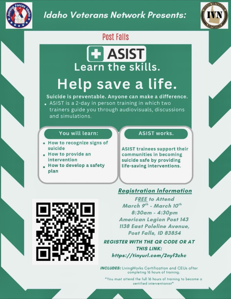 The American Legion Department of Idaho District 1 Spring Meeting for 2026 is scheduled for Saturday, March 21, 2026, at the Steven H Nipp, Post 143, 1138 E Poleline Ave in Post Falls. Registration and a meet-and-greet starts at 9:00 am, followed by the meeting at 10:00 am.