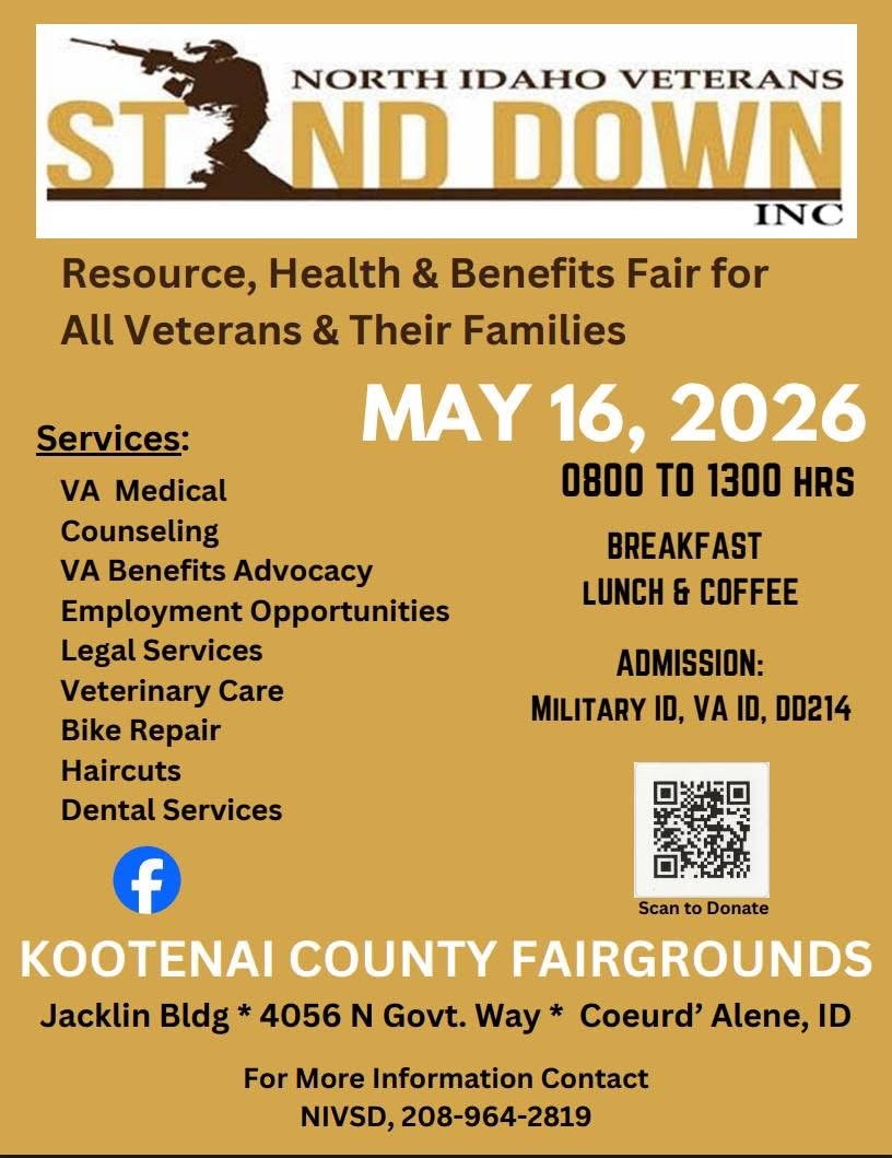 The American Legion Department of Idaho District 1 Spring Meeting for 2026 is scheduled for Saturday, March 21, 2026, at the Steven H Nipp, Post 143, 1138 E Poleline Ave in Post Falls. Registration and a meet-and-greet starts at 9:00 am, followed by the meeting at 10:00 am.